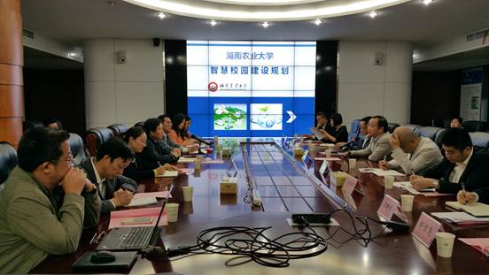 陶伟梁副行长介绍了湖南省农行的技术力量、与我校的合作基础、与高校的合作经验等情况,并感谢我校为农行培养了大量业务骨干和高级精英,诚挚希望成为我校重要合作伙伴,为学校的智慧校园建设提供更多支持和服务。