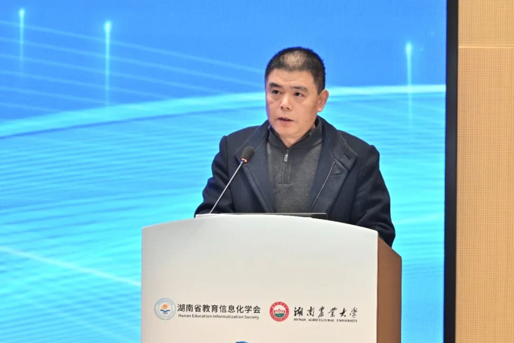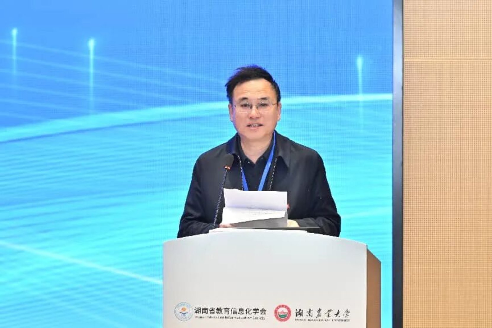 兰勇在致辞中表示,学校将始终把教育信息化作为推动高质量发展的核心驱动力,锚定“智慧教育赋能高质量发展”目标,深化与学会及各成员单位的合作,积极参与教育信创生态建设,探索人工智能在涉农教育、科研和社会服务中的特色应用场景,努力为湖南教育数字化贡献“农大方案”。