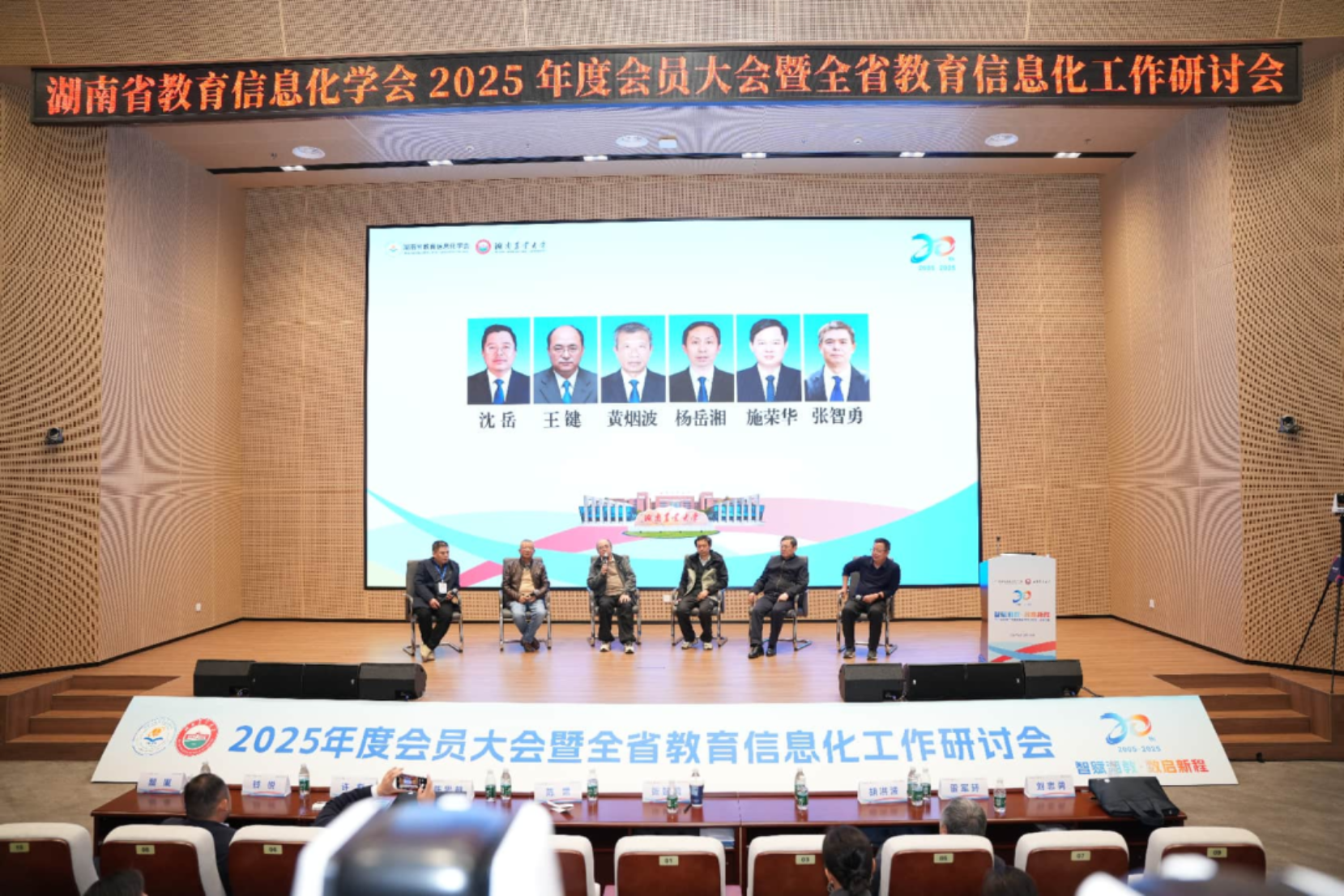2026年1月9至10日,湖南省教育信息化学会2025年度会员大会暨全省教育信息化工作研讨会在岳麓山实验室隆重召开。大会以“智赋湘教,数启新程”为主题,系统总结学会年度工作成效,深入研讨人工智能赋能教育高质量发展的实践路径,科学谋划“十五五”教育信息化发展规划。本次大会由湖南省教育厅指导,湖南省教育信息化学会主办,湖南农业大学承办,来自全省250余家单位,400余位教育行政部门、高校、职业院校、中小学校领导,专家学者及企事业代表参会,共商教育数字化转型大计。