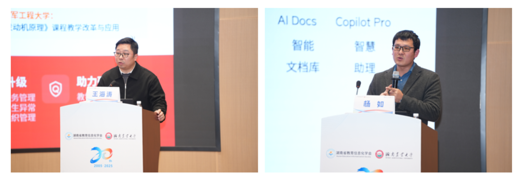 湖南农业大学信息与网络中心主任卓辉分享《数智芯农大,共创耕未来——湖南农业大学“十五五”信息化规划思考》,国家超算长沙中心常务副主任陈果分享《网络互连定义AI算力极限》,永州市新田县教育信息中心主任刘庆分享《人工智能与教育创新的思考和探索》,湖南科技职业学院副校长许彪分享《高职教育AI智能体应用创新实践》,湖南第一师范学院现代教育技术与网络中心副主任姜明芳分享《技术与服务双轮驱动:数智融通下服务门户与应用实践》, 湖南省委网信办二级调研员谷平华分享《人工智能时代的数据安全及治理》等热点议题,现场思想碰撞激烈,成果丰硕。